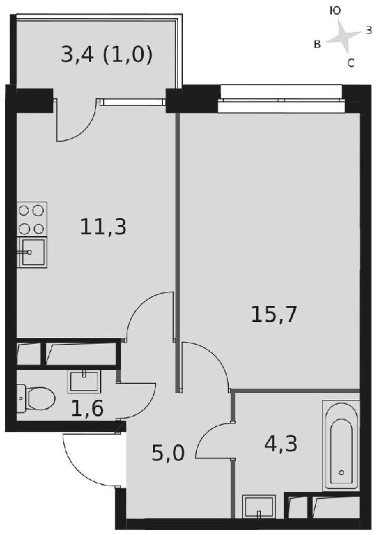 Жилая: 15,6 м2