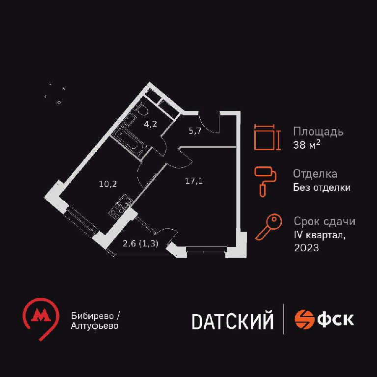 Продаётся 1-к квартира номер 563 общей площадью 38.4 кв.м. на 4-м этаже 9 этажного здания. Без отделки. Цена с учётом скидки.
