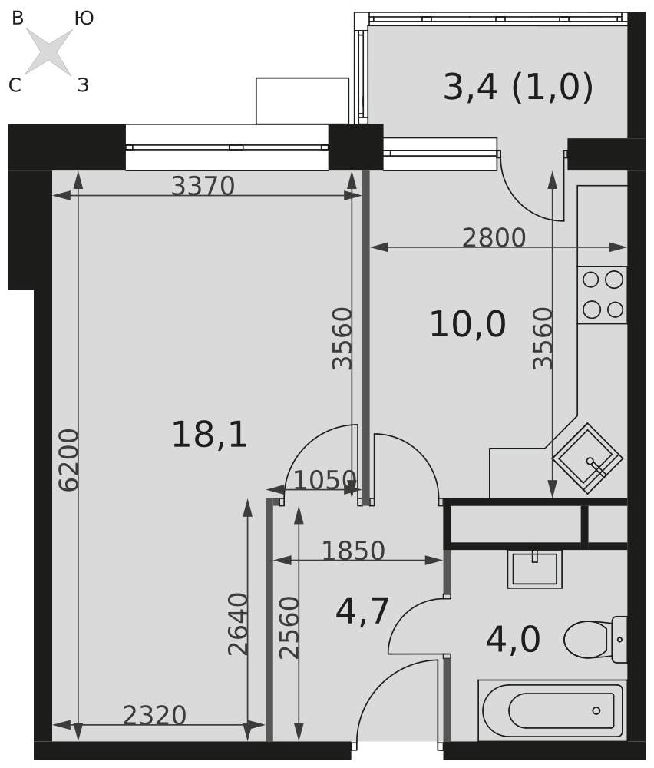 Жилая: 18,1 м2